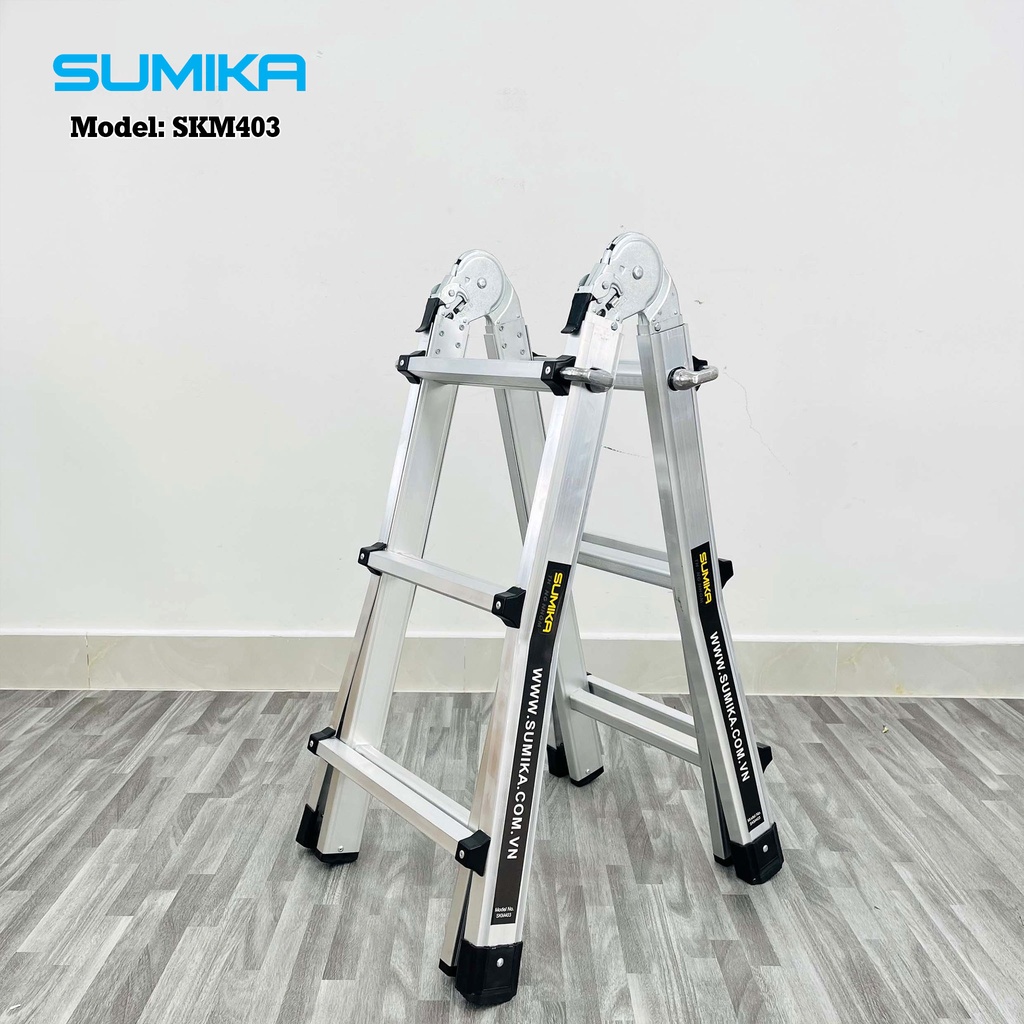 Thang nhôm chữ A rút lồng SUMIKA SKM403 - Chữ A cao nhất 1.4m, chữ I cao nhất 3.0m, tải trọng 150kg ✔️Thang nhôm gấp chữ A mở rộng SUMIKA là sản phẩm nhập khẩu 100% chất lượng tốt nhất đến từ thương hiệu SUMIKA. Thang nhôm đem lại sự tiện dụng cho người dùng nhờ các