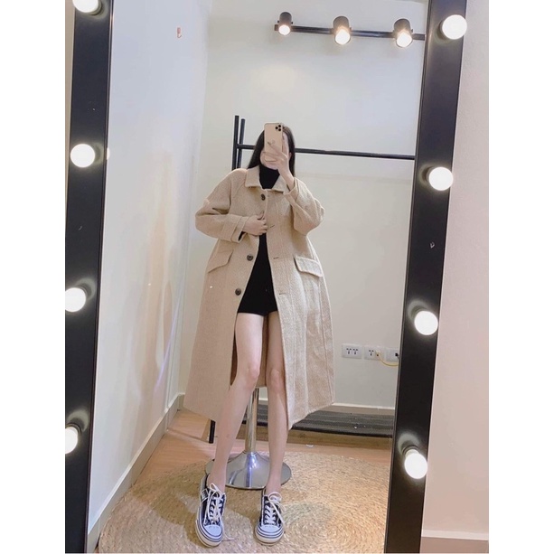 Thanh lý áo dạ ép lông cừu dài handmade màu be nude tây Hàn Quốc form đẹp mới new99%