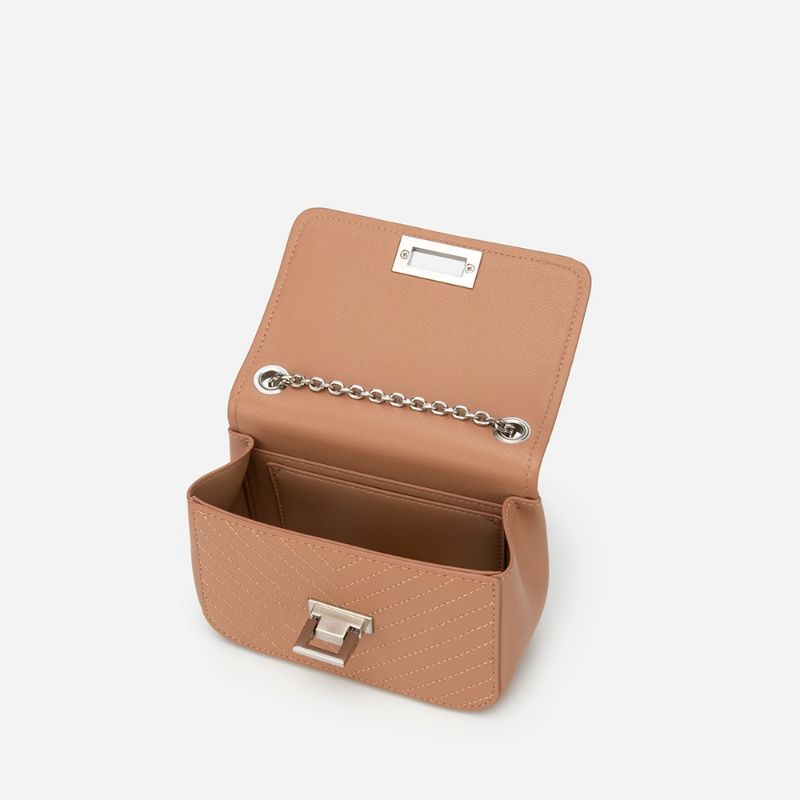 Thanh lý Túi Vascara Túi May Chỉ Nổi Herringbone Nắp Gập Viền Metallic -- Màu Be Đậm