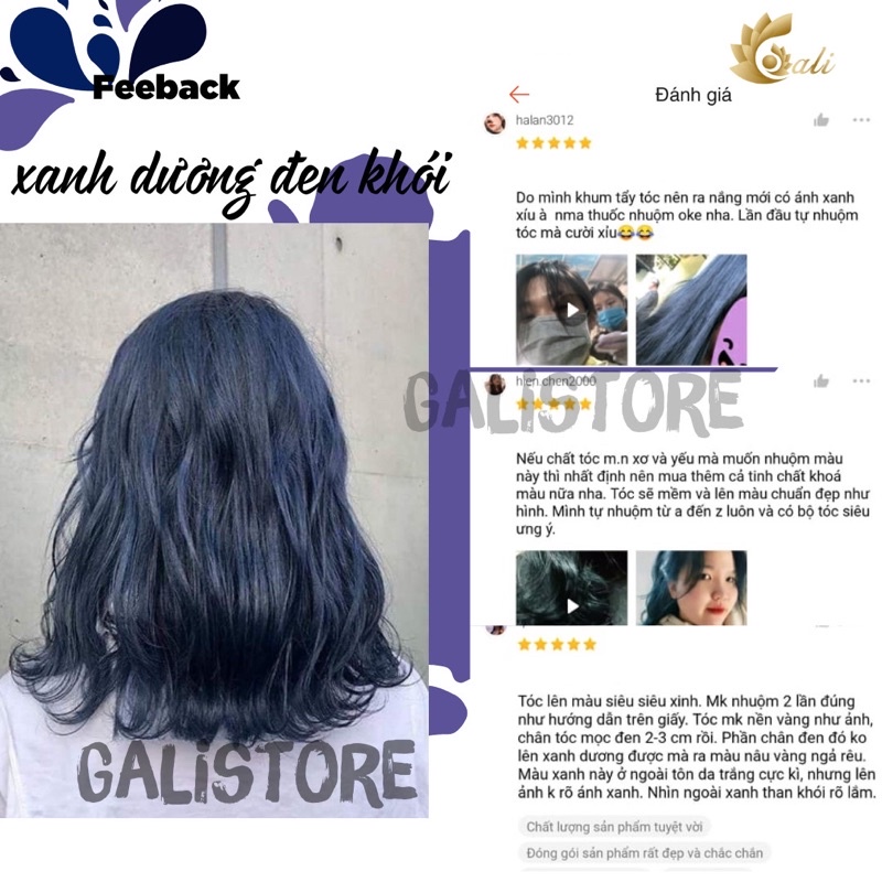 Thuốc nhuộm tóc màu xanh dương đen khói tặng oxy trợ nhuộm Galistore hiện tại thuốc nhuộm tóc màu xanh dương đen khói tại shop gồm các loại: (shop ko bán loại dưỡng ít) - Nhuộm dưỡng vừa 69k: màu cực đẹp góp phần làm lên thương hiệu của shop nhiều năm - Siêu dưỡng 12