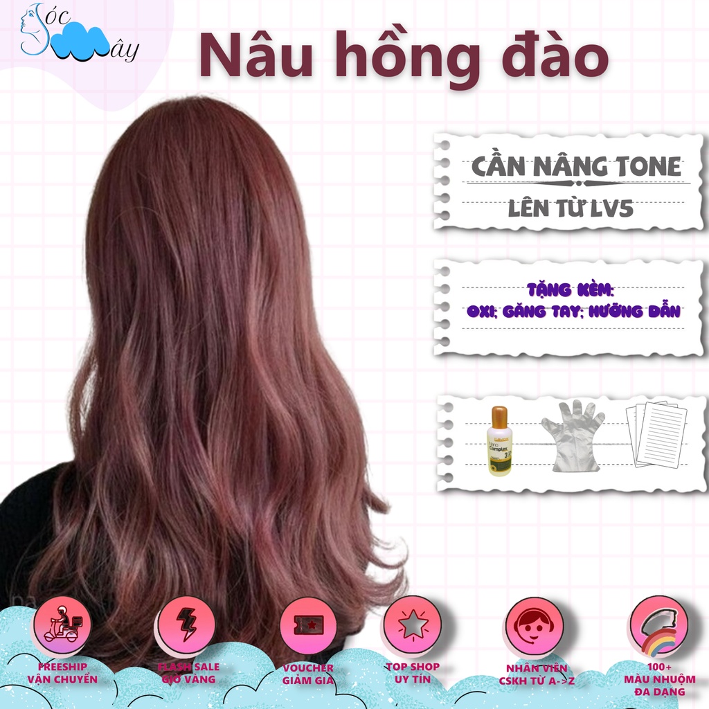 Thuốc Nhuộm Tóc Màu NÂU HỒNG ĐÀO Không Tẩy Tặng Oxy Trợ Nhuộm Găng Tay Mũ Ủ