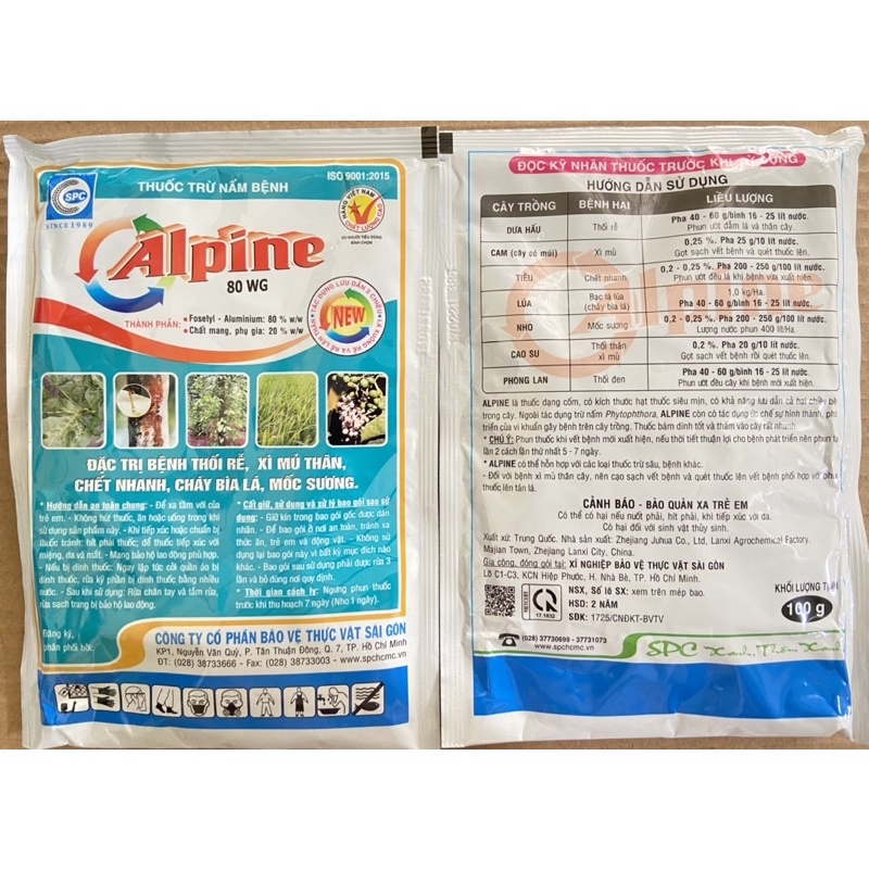Thuốc trừ nấm bệnh Alpine 80WG 100gr Thối rễ - Chết nhanh - Xì mủ - Mốc sương