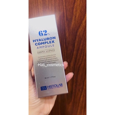 Tinh chất dưỡng ẩm HYALURON COMPLEX AMPOULE 62 - HISTOLAB HA 50ml - DƯỢC MỸ PHẨM CHÍNH HÃNG THÀNH PHẦN CHÍNH: - Sodium Hyaluronate : Bổ sung độ ẩm vượt trội, làm dịu mát da hiệu quả , tăng khả năng đàn hồi và bảo vệ cho da. - Tinh chất Ốc Sên : Cung cấp dưỡng chất, t