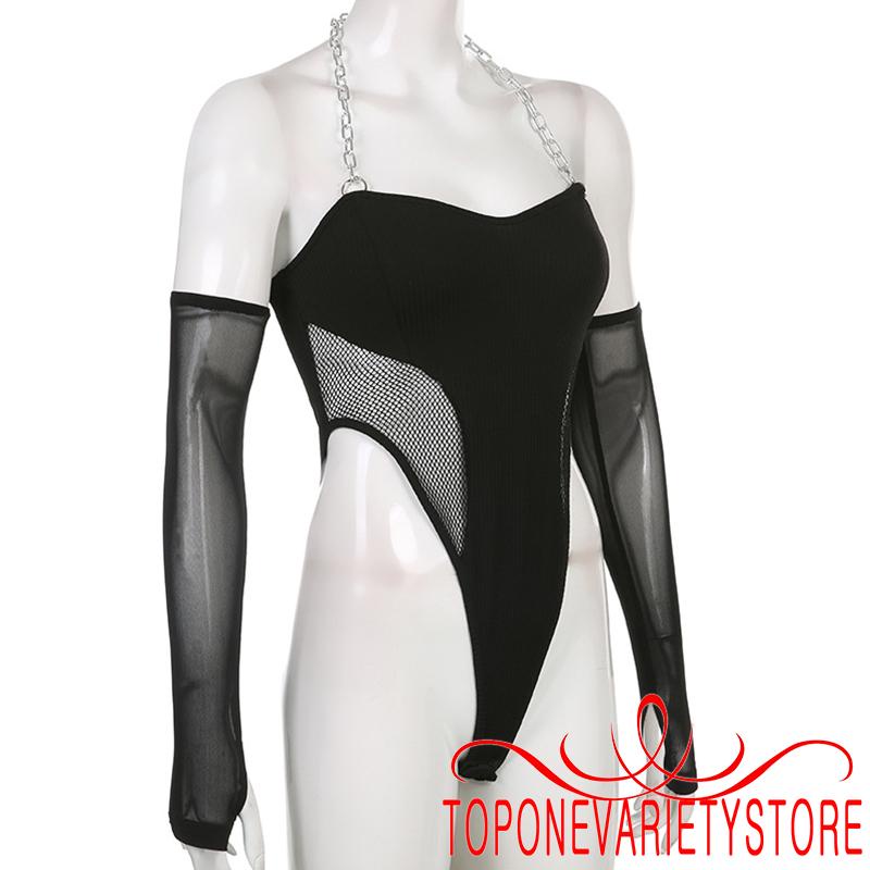 Topone Áo Liền Quần Dài Tay Phối Lưới Thời Trang Cho Nữ