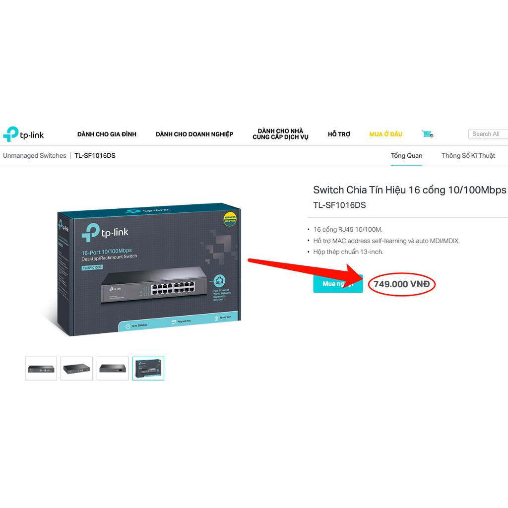 TP-Link Bộ chia tín hiệu 16 cổng RJ45 10/100 Mbps Công suất cao - TL-SF1016DS - Hàng Chính Hãng