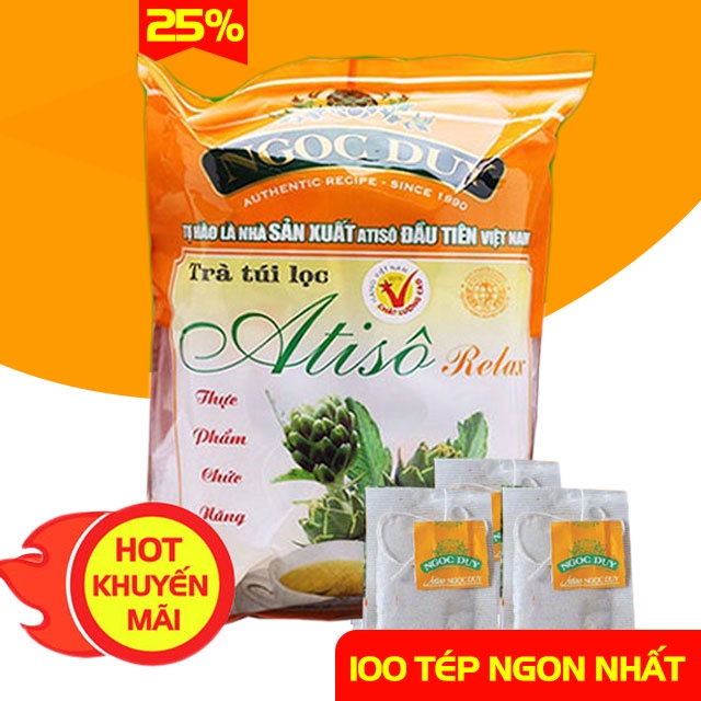 TRÀ ATISO THƯỢNG HẠNG RELAX 100 TÚI LỌC (TỶ LỆ BÔNG ATISO > 60%) [SẢN PHẨM CAO CẤP CHÍNH HÃNG CÔNG TY TNHH TRÀ NGỌC DUY ĐƠN VỊ ĐẦU TIÊN KHAI SINH RA GIÒNG TRÀ ATISO TỪ NĂM 1990] » Thành phần: Cao nhất 60% bông atiso, 20% thân và 20% rễ atiso (Không sử dụng dụng hương liệu, chất phụ da) » Giá bán khuyến mãi: 149.000đ ( Giá gốc: 199.000đ) » Số an toàn thực phẩm: 4931/2016/ATTP-XNCB do Cục An toàn thực phẩm – Bộ Y Tế cấp ngày 4/3/201 » Nhà Máy Sản Xuất: (Đạt chuẩn Quốc Tế ISO:22000:2005 ) » Nguồn nguyên liệu: (chứng nhận đạt chuẩn VietGrap) » Có Hệ Thống quản lý chất lượng: Chuẩn UNICERT ISO 9001 & JAS-ANZ.. » Được Chứng nhận : Hàng Việt Nam chất lượng cao 2018-2019-2020 do người tiêu dùng bình chọn » Được Chứng Nhận: Sản Phẩm đạt Chuẩn OCOP » Hạn sử dụng: 24 tháng (mới sản xuất kiểm tra trước khi nhận hàng) ĐẶT HÀNG TRỰC TUYẾN TẠI [TRANGOCDUY.COM] CÔNG TY TNHH TRÀ NGỌC DUY ĐƠN VỊ SẢN XUẤT UY TÍN SẢN PHẨM CAO CẤP CHẤT LƯỢNG… » Cam kết chất lượng: Sản phẩm Trà Atiso hoàn toàn nguyên chất 100% atiso không sử dụng chất tạo mùi tạo màu chất bảo quản, đảm bảo chất lượng cho quý khách hàng sử dụng… » Bảo hành: Đổi trả sản phẩm miễn phí » Chính Sách: Hỗ trợ Giao hàng Tận Nhà – Kiểm tra sản phẩm rồi mới thanh toán (Đảm bảo an toàn cho mùa dịch)
