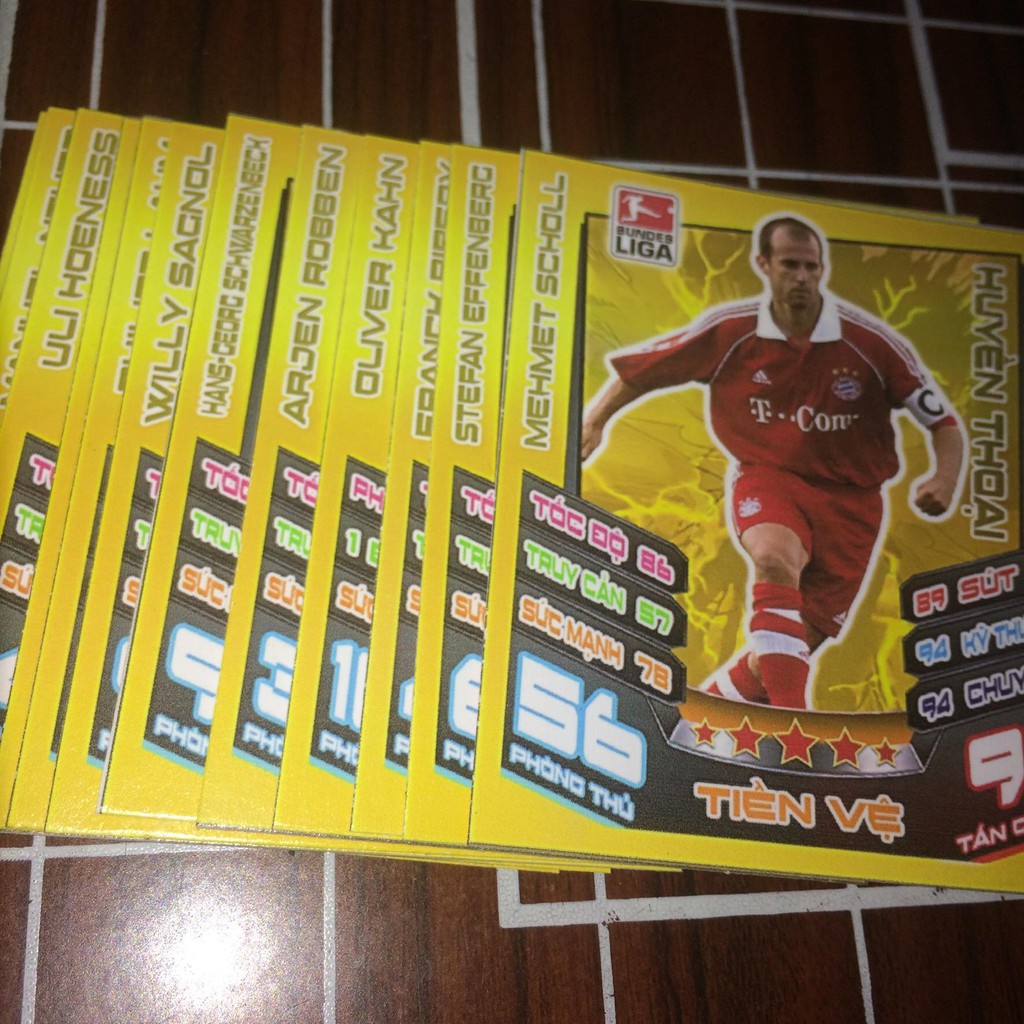 ► [THẺ IN] Trọn bộ 24 thẻ cầu thủ bóng đá Huyền thoại câu lạc bộ Bayern Munich kích thước thẻ Poca Gồm 24 cầu thủ thuộc câu lạc bộ Bayern Munich. Mô phỏng Poca Match Attax huyền thoại 2012/13. Thẻ Match Attax in trên giấy chất lượng cao, sắc nét, Giấy C300. Kích thướ