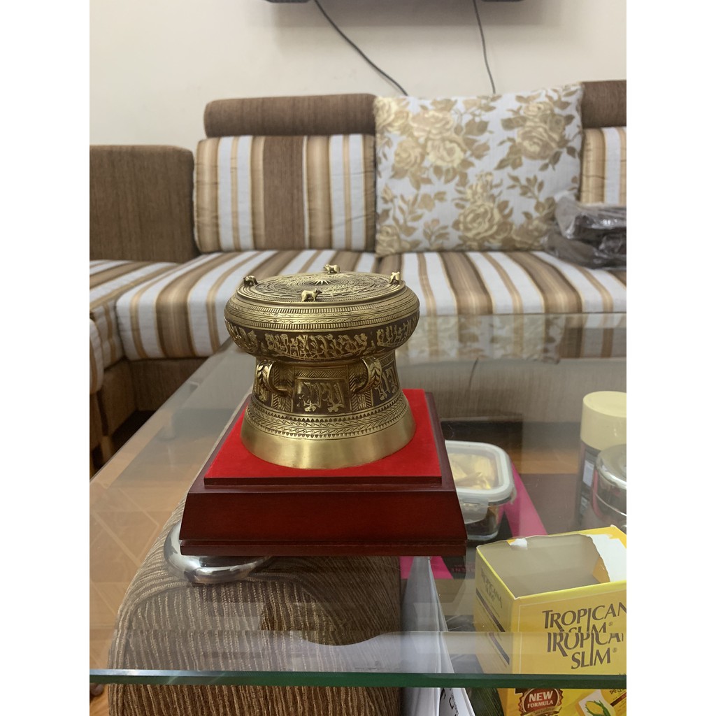 Trống đồng mô hình làm quà tặng quà biếu cao cấp để bàn làm việc. - Chất liệu: đồng vàng nguyên chất. - Đế làm bằng gỗ mỹ nghệ, hộp giấy, lót lụa. - Kích thước: đường kính 7cm; đường kính 8cm; 9cm; 10cm; 12cm; 15cm; 20cm - Sản phẩm: 1 trống, 1 đế gỗ, 1 hộp đựng quà s