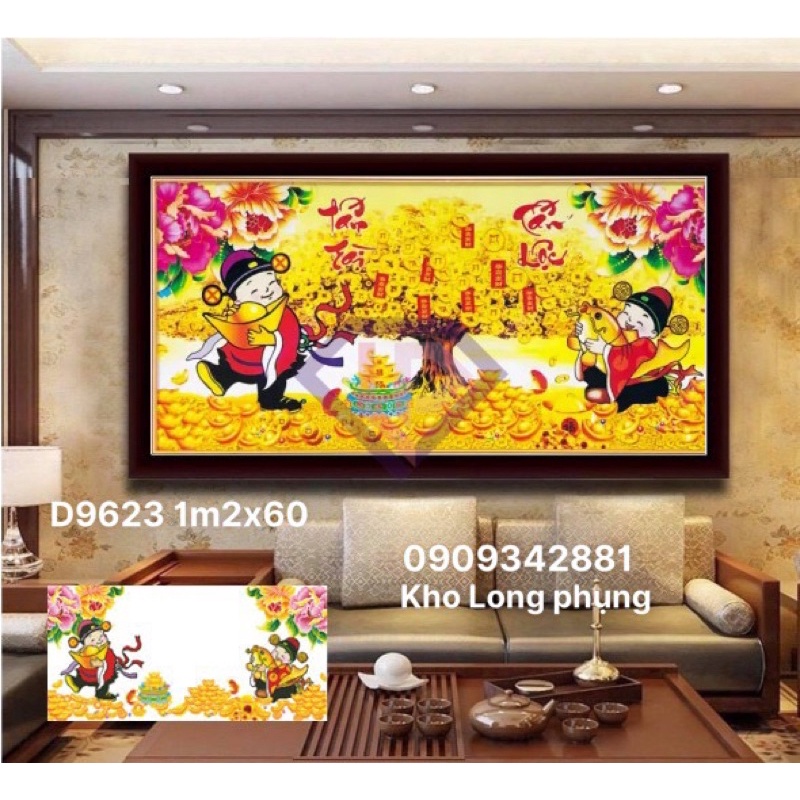 Tranh đính đá 2 ông thần tài tấn tấn lộc D9623-1m2x65cm