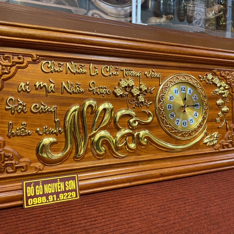 Tranh đồng hồ gỗ hương chữ nhẫn