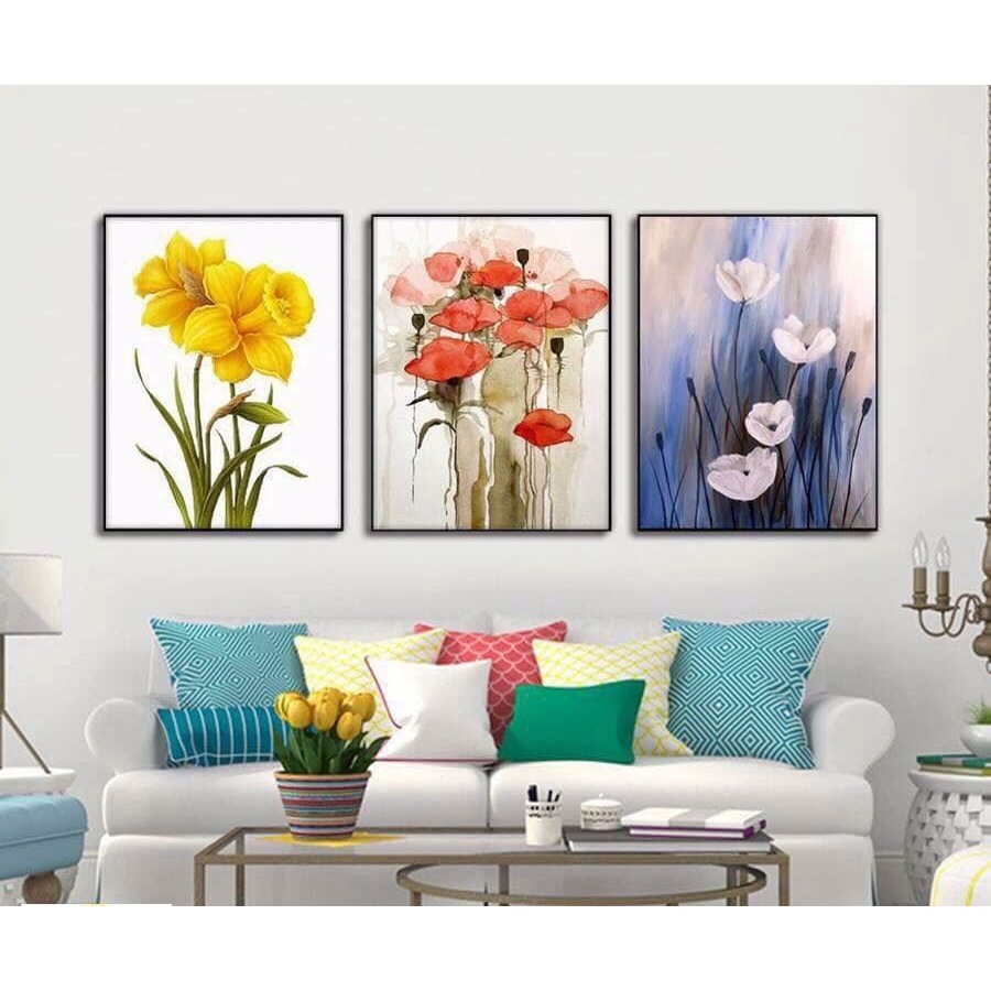 Tranh canvas treo tường nhiều mẫu hoa lá tre phòng khách, phòng ngủ, combo 3 bức tặng kèm đinh treo