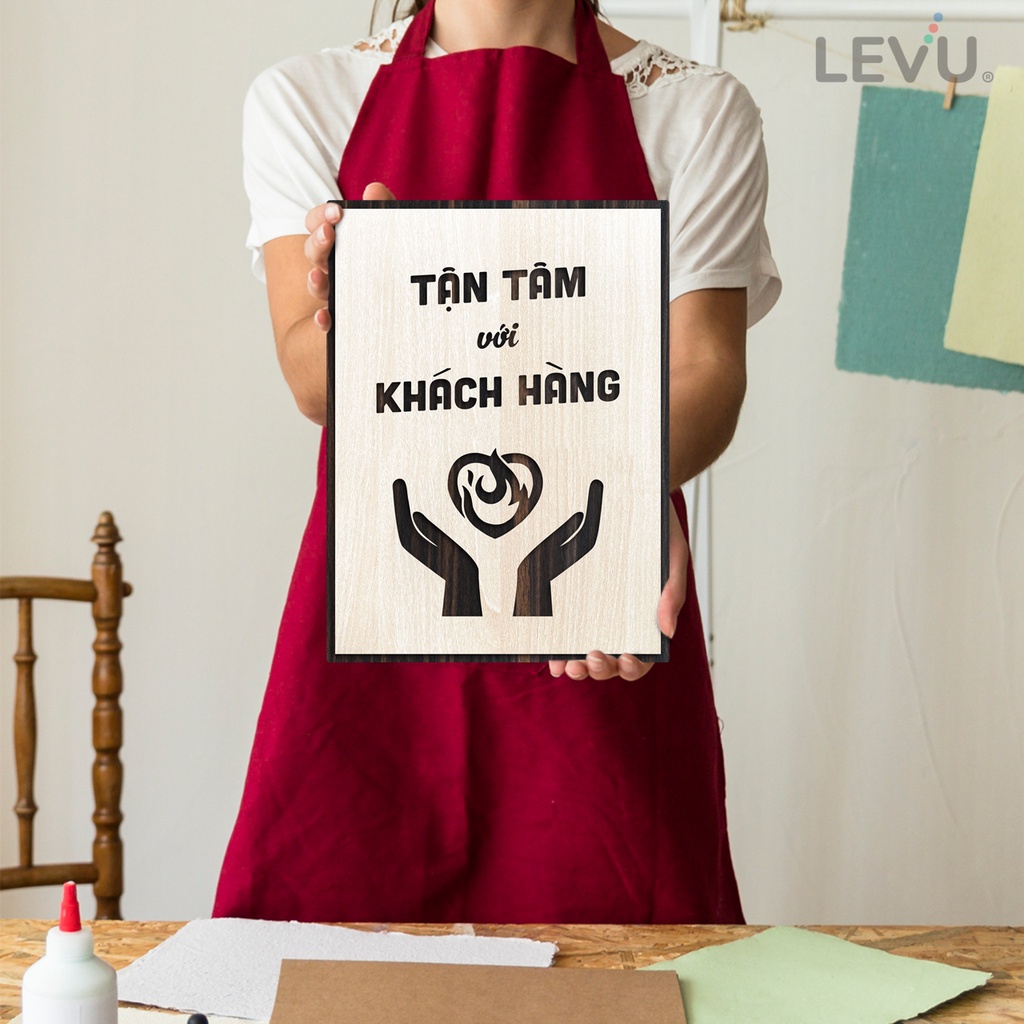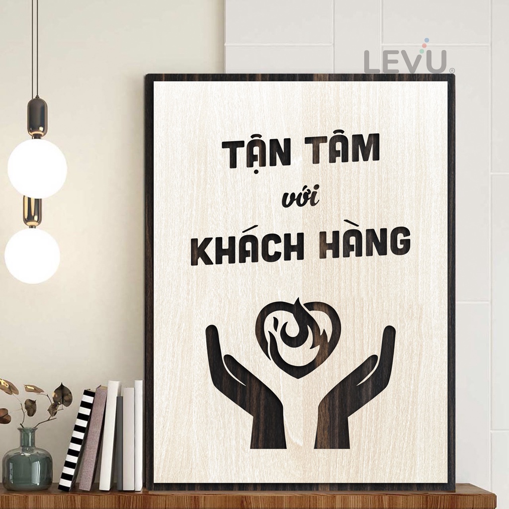 Tranh khẩu hiệu công ty LEVU134 "Tận tâm với khách hàng" sẽ là vật trang trí không thể phù hợp hơn đối với không gian văn phòng, nơi làm việc. Với thông điệp ý nghĩa về chăm sóc khách hàng thì bức tranh sẽ không chỉ giúp nhân viên luôn có được phong cách, tác phòng ch