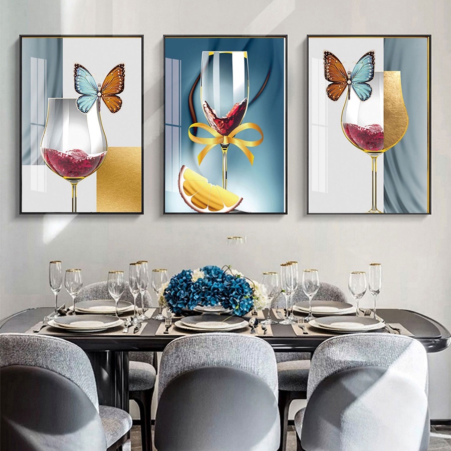 Tranh Laminate Tráng Gương - Tranh Treo Tường Phòng Ăn, Nhà Bếp - Ly Rượu Nghệ Thuật