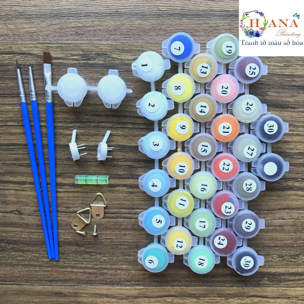 Tranh sơn dầu số hóa tự tô màu DIY painting by numbers - Tranh số hóa phong cảnh mùa thu buồn