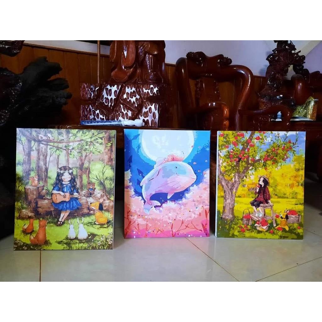 Tranh tô màu, Tranh sơn dầu số hóa tự tô Madoca có khung 40x50cm Nàng thơ