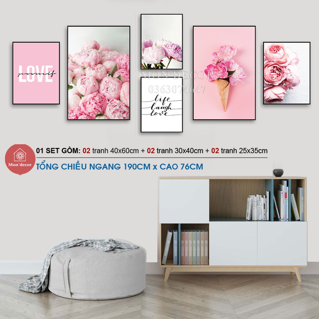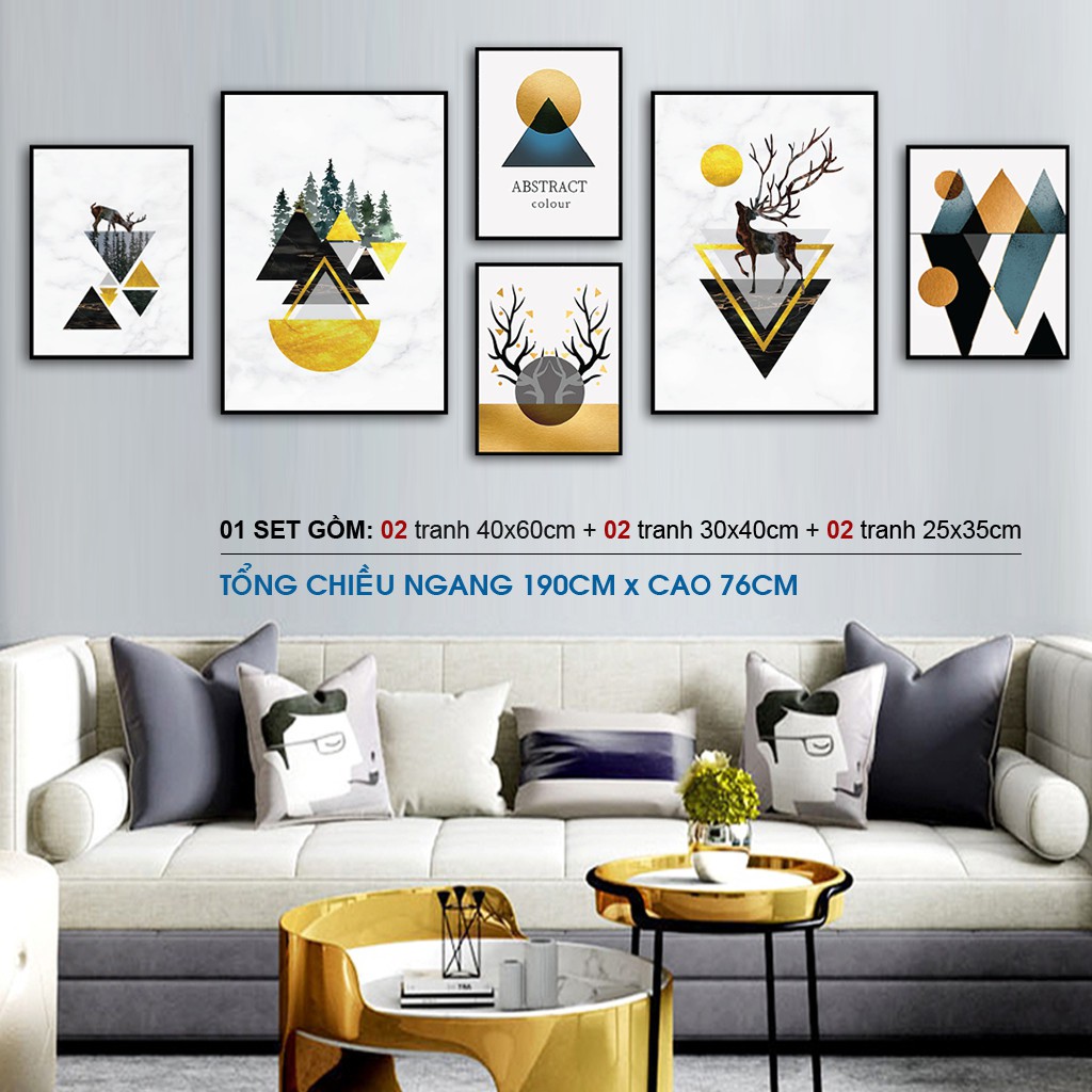Tranh treo tường, tranh canvas treo phòng khách 6 bức cỡ đại phong cách Vintage khung nổi siêu bền - MON'DECOR
