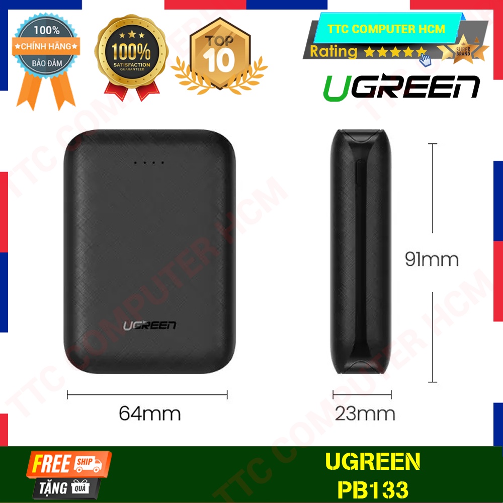 UGREEN PB133 |Pin Sạc dự phòng 10000mAh Ugreen 60873 hỗ trợ sạc vào qua Micro USB hoặc USB-C - HÀNG CHÍNH HÃNG TTC COPUTER HCM Pin Sạc dự phòng 10000mAh Ugreen 60873 hỗ trợ sạc vào qua Micro USB hoặc USB-C - SKU: 60873 - Dung lượng Pin: 10000mAh - Loại pin: Li-polyme