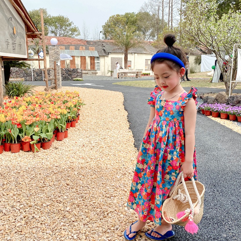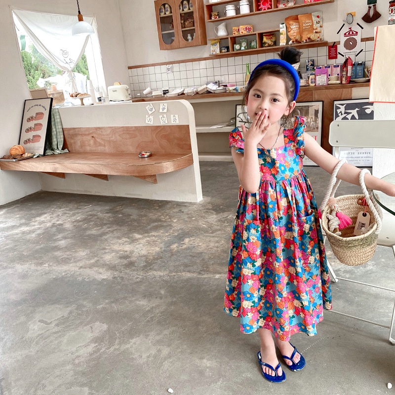 Váy đầm Công Chúa Cổ Vuông Họa Tiết Hoa Phong Cách Hàn Quốc siêu sang