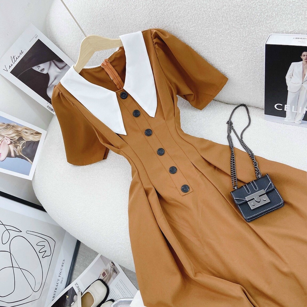 Váy Đầm Công Sở ELYS Chất Trượt Hàn Cao Cấp Thiết Kế Phối 2 Màu Dáng Xòe Nhẹ LY014