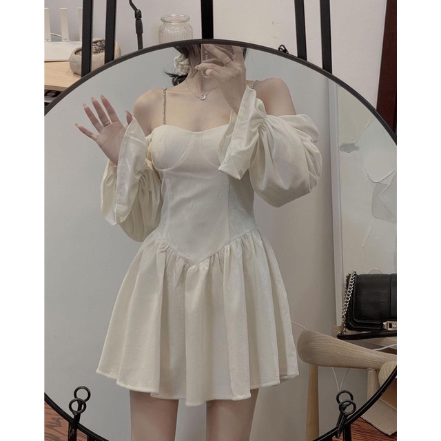 Váy đầm cổ vuông trễ vai cúp ngực tay loe công chúa kiểu ulzzang - by SugarG
