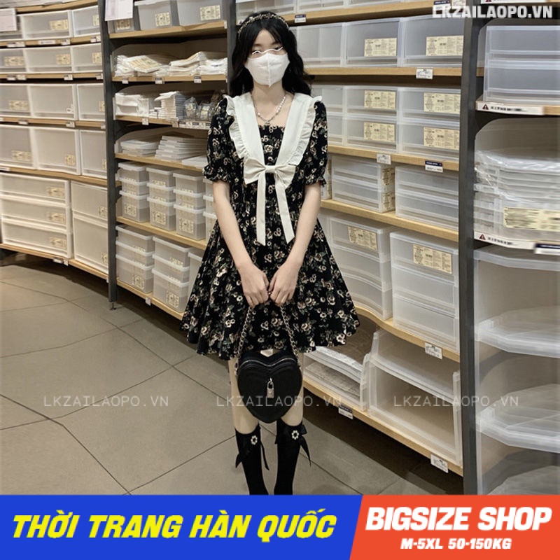 Váy đầm nữ Bigsize Đầm hoa nhí dáng suông tay ngắn cổ chữ v bánh bèo chữ a mùa hè Phong cách Hàn Quốc Thời Trang cá tính xinh đẹp cho người mập béo nữ