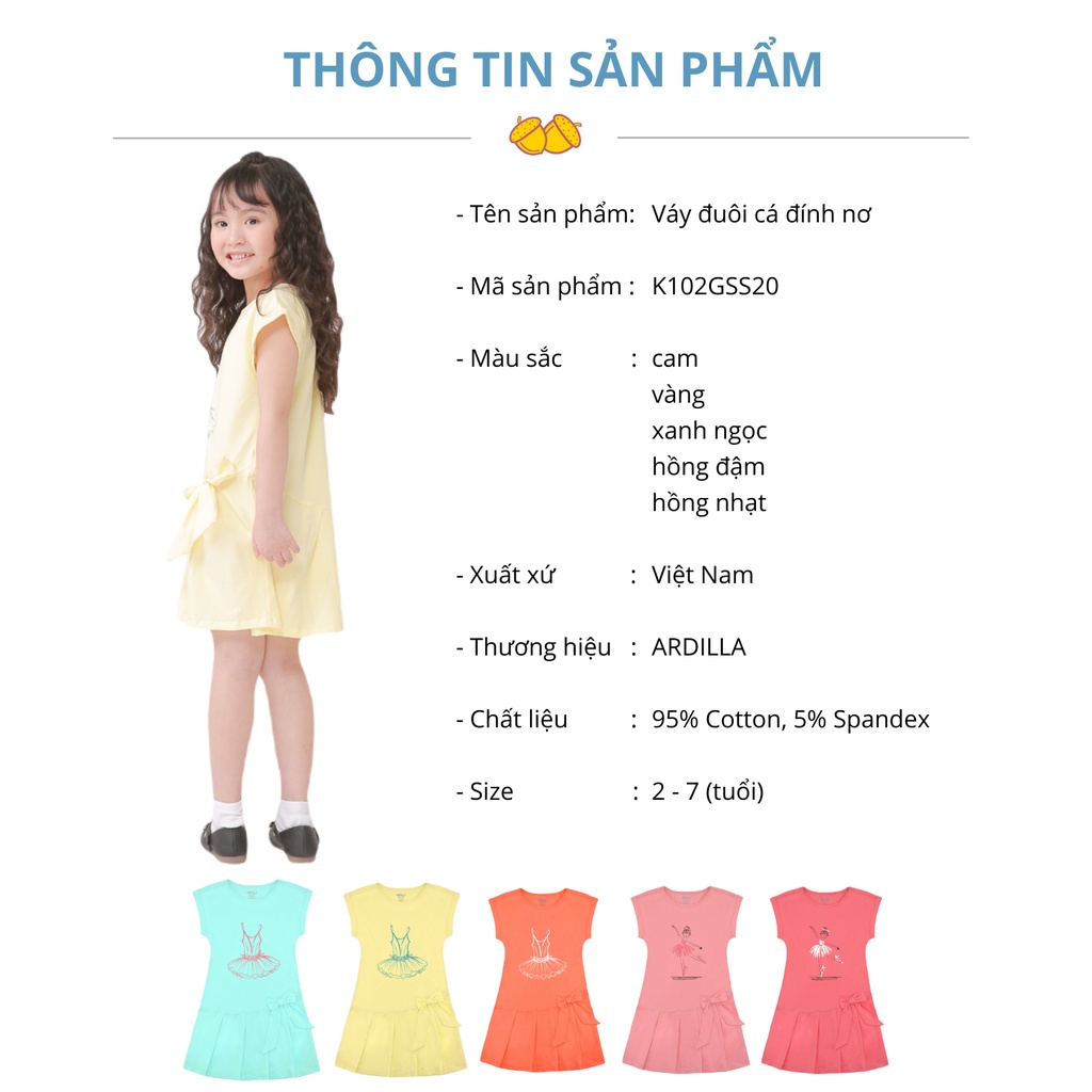 Váy Đuôi Cá Lệch Bé Gái ARDILLA Màu Sắc Tươi Sáng, Phần Eo Đính Nơ Điệu Đà Cho Bé Từ 2-7 Tuổi K102GSS20