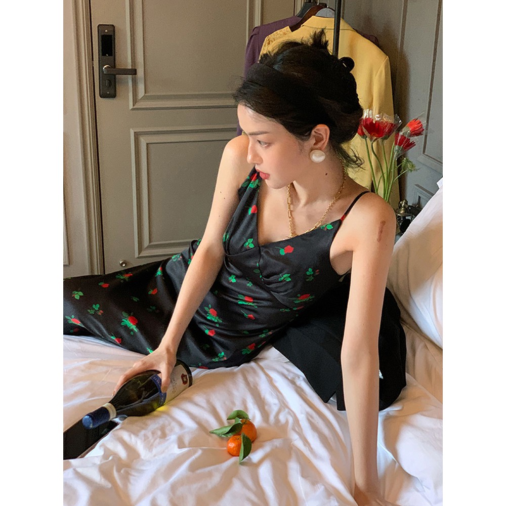 Váy 2 Dây,Đầm 2 Dây Cổ V Phong Cách Retro Quyến Rũ Mới Mẻ Cho Nữ