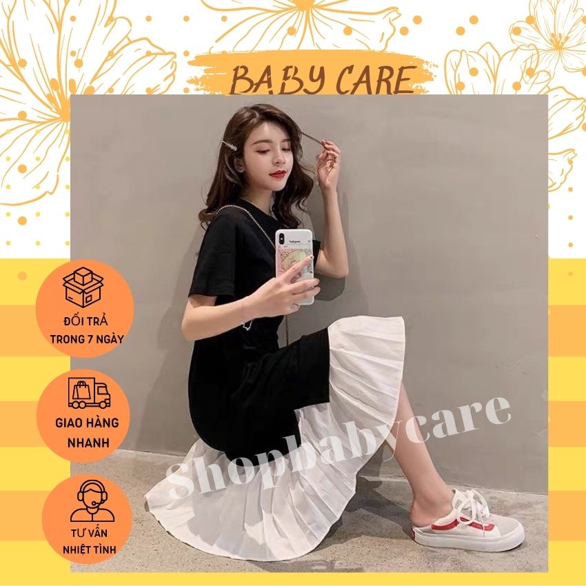 Đầm bầu suông tay hến cổ tròn Váy đuôi cá chất cotton siêu xinh hàng VNXK