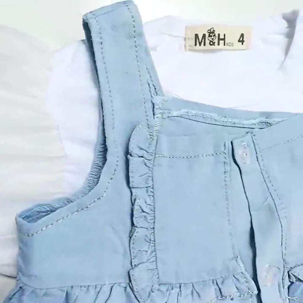 Váy cộc tay bé gái set áo tay bồng kết hợp váy jean dáng váy xinh xắn cho bé gái size 1 - 6 tuổi