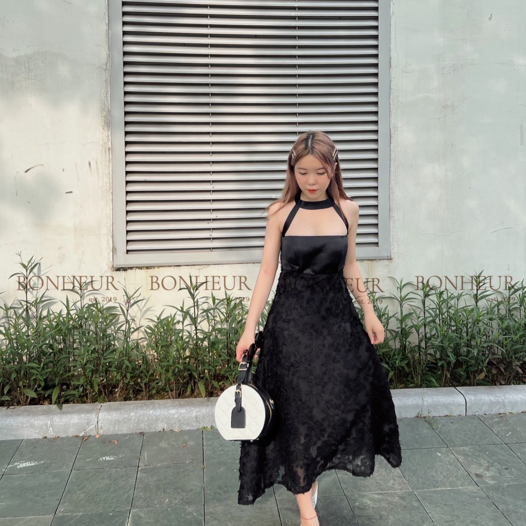 Váy dự tiệc váy thiết kế đen cổ dây dáng dài hàng loại 1 chất đẹp shop HN DESIGN
