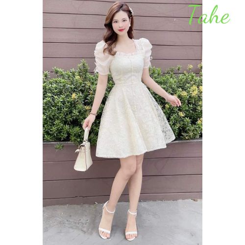 Váy dự tiệc cưới thiết kế cao cấp dáng xòe vải ren siêu sang đi làm dạo phố tôn dáng trẻ trung loại 1 Tahe V91