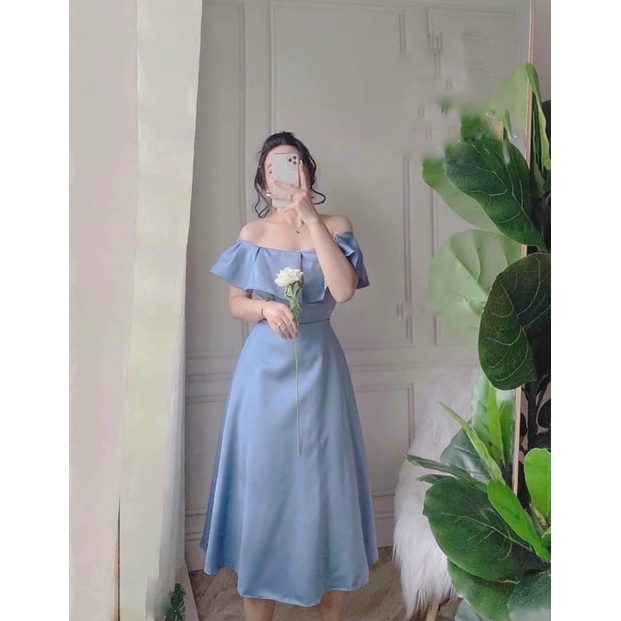 Váy dự tiệc trễ vai siêu xinh-đầm trắng trễ vai dự tiệc sang chảnh