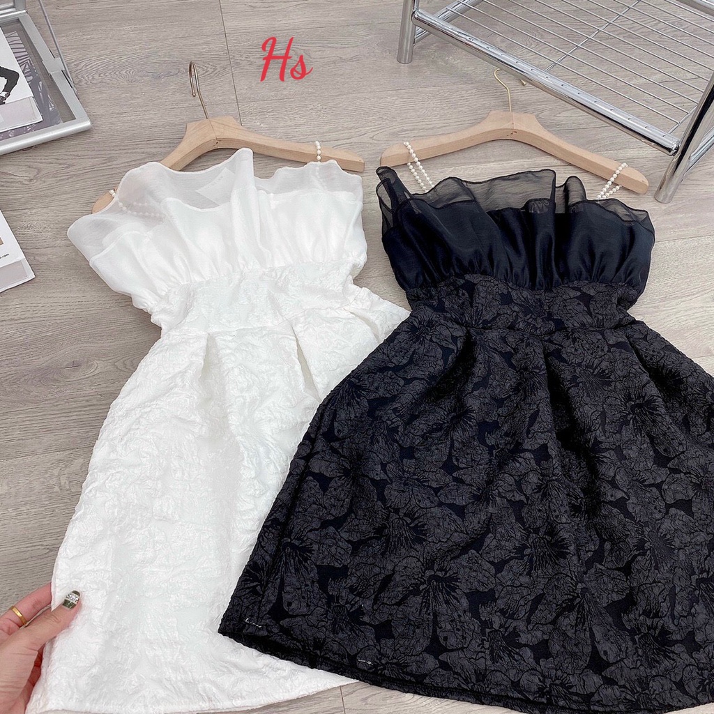 Váy Ren Trễ Vai Gấm Hoa 2 Dây Bánh Bèo, Đầm Ren Gấm Hoa Trễ Vai 2 Dây Bánh Bèo ShopXinh888888