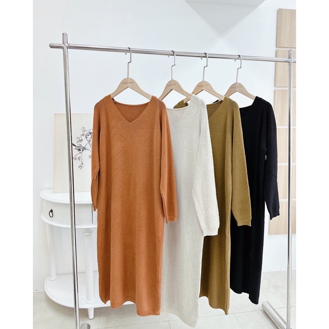 Váy len cổ tim dài tay, phom suông rộng, hàng QCCC chất len đẹp hàng loại 1