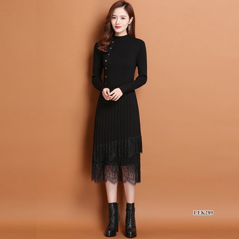 Váy len nữ phối ren phong cách trẻ trung, chất len mềm mịn, phù hợp đi chơi đi làm LEK289