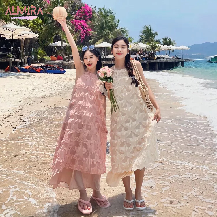 Đầm váy maxi cổ yếm xếp ly áo yếm và chân váy nhiều màu đi biển Aimee closet