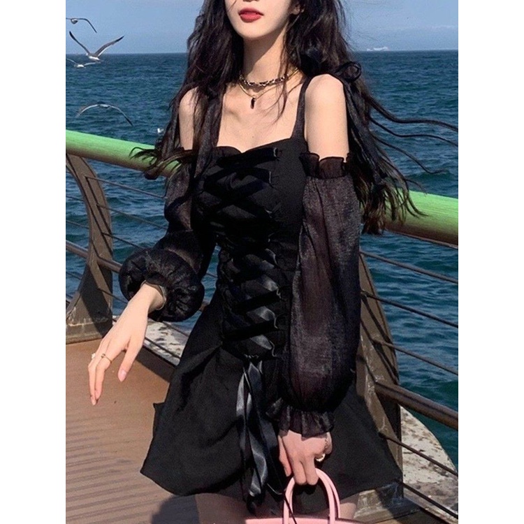 Váy đầm nữ kiểu yếm cột nơ ôm body dáng ngắn có mút đen sang chảnh hàn quốc mẫu mới 2022 -mã VD126