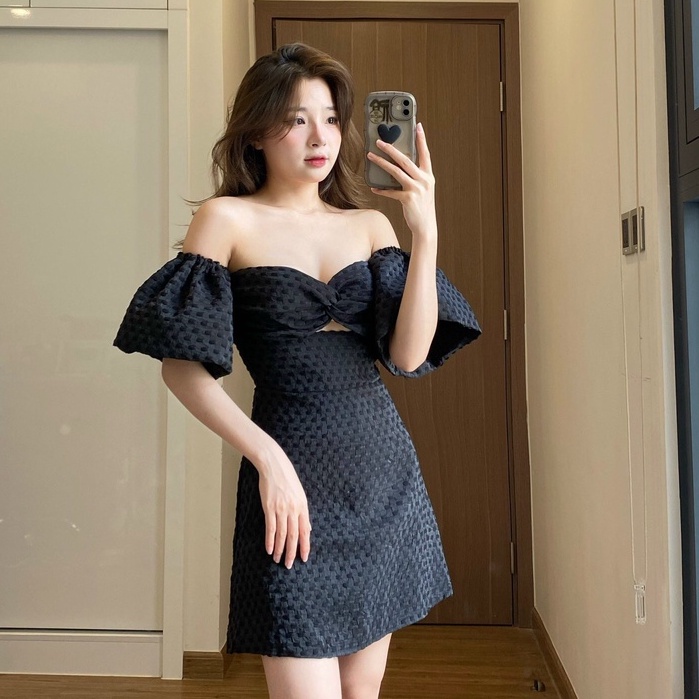 Váy nữ trễ vai tay bồng chất, đầm xốp nữ kiểu mới mặc tôn dáng dễ phối đồ