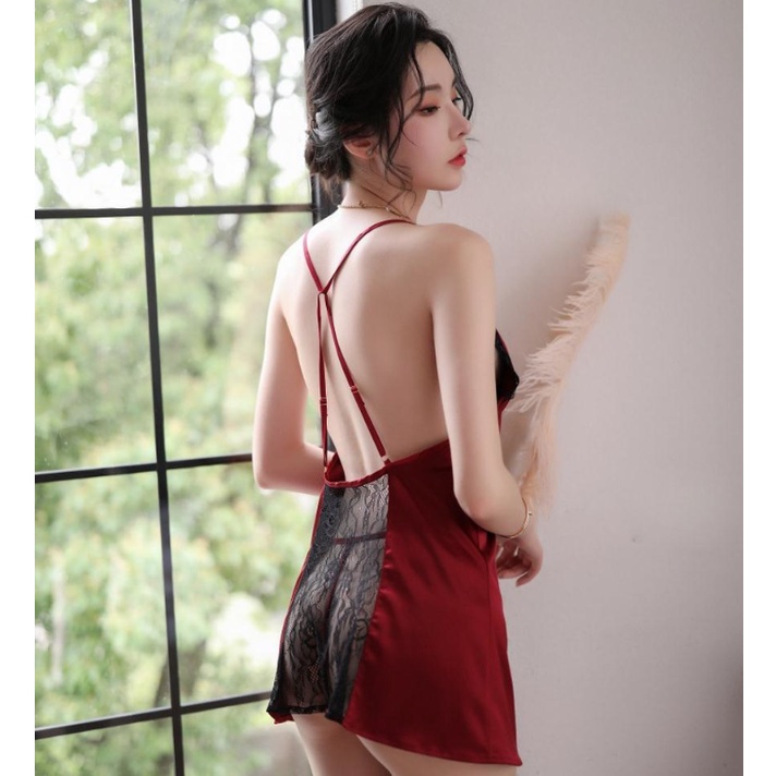 Váy ngủ hai dây lụa satin sexy cao cấp, Đầm ngủ mặc nhà hở lưng gợi cảm quyến rũ