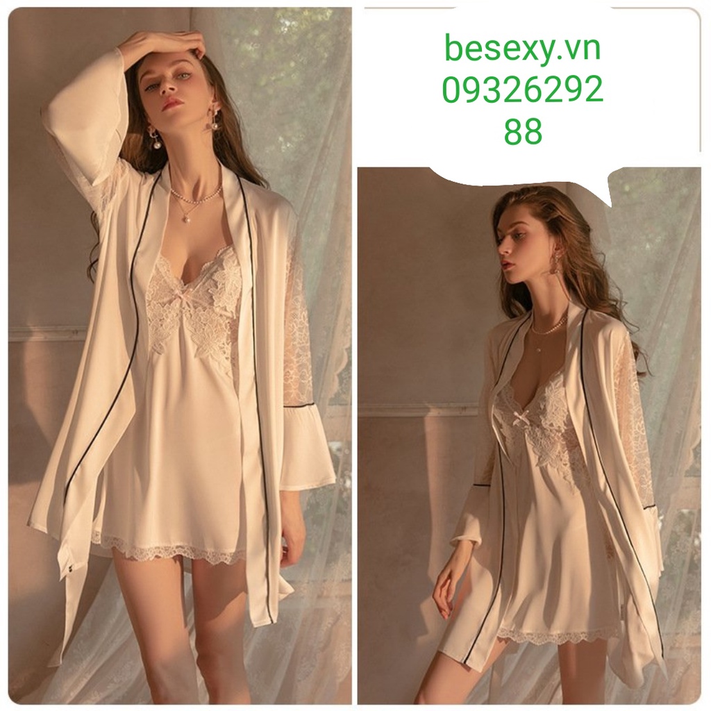 Váy Ngủ Lụa Tặng Kèm Áo Choàng Lụa Sang Chảnh Tay Áo Phối Ren Đẹp BS-1170