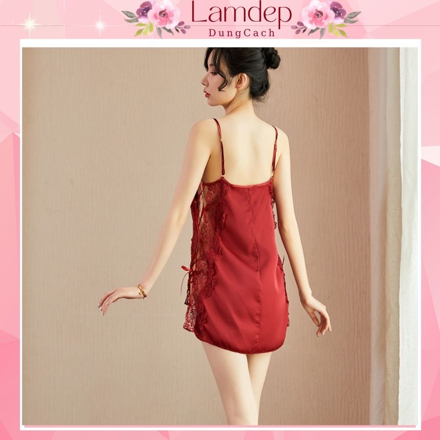 HT65 Váy ngủ sexy dây chéo lưng xẻ hông quyến rũ, đầm ngủ lụa dây buộc hông gợi cảm HT65