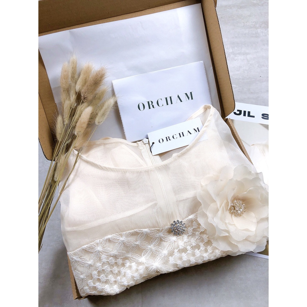 Váy ren dáng dài thiết kế tiểu thư cổ tròn tay cánh tiên hoa cài chất liệu cao cấp đi làm, dự tiệc - ORCHAM in