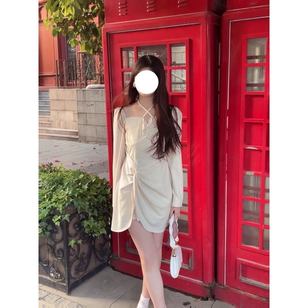 Váy thắt eo có dây hoa chéo cổ Quảng Châu cực xinh
