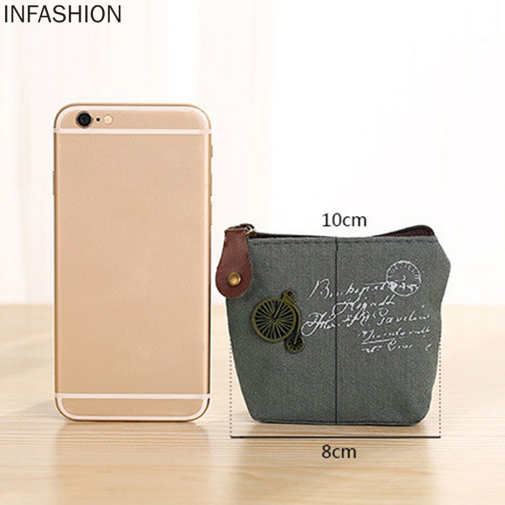 Ví đựng tiền xu bằng vải canvas mini có dây kéo phong cách cổ điển tiện lợi