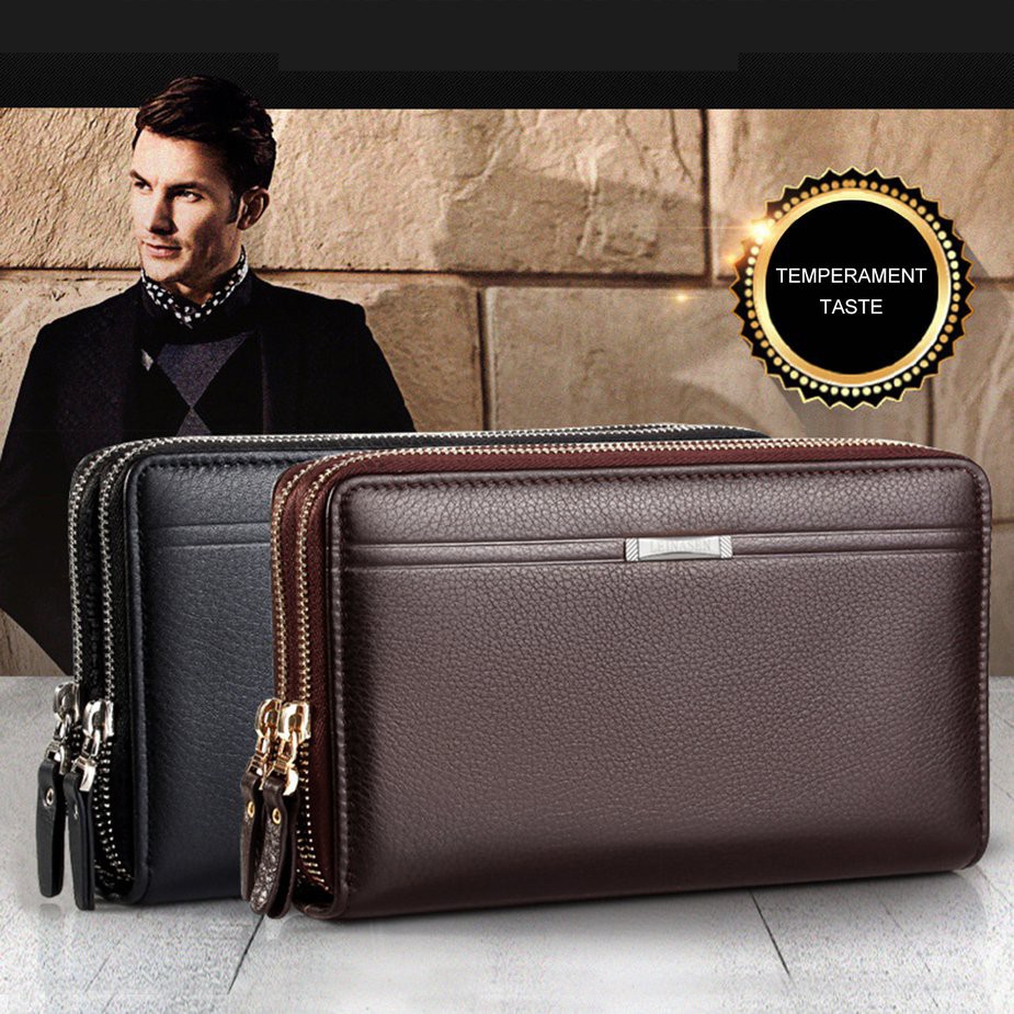 Ví da PU cầm tay có sức chứa lớn phối khóa kéo thời trang cho nam