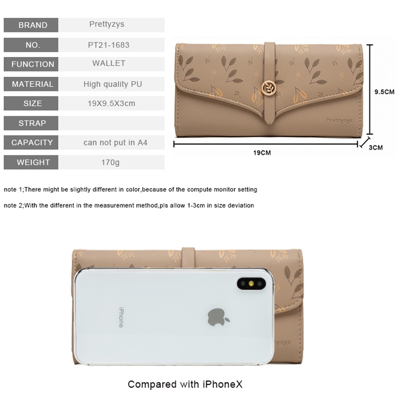 Da mềm PU chất lượng cao Kích thước: 19x9.5x3cm (LxWxH) Nội thất: 12 khe cắm thẻ, 1 ảnh / cửa sổ ID, 2 ngăn hóa đơn, 1 túi tiền xu có dây kéo Ghi chú Xin vui lòng cho phép đo độ lệch 1-3 cm do đo lường thủ công. Xin vui lòng đảm bảo rằng đã điền đúng địa chỉ trong q