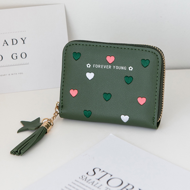 Tên: Ví ngắn nhiều tình yêu Giới tính áp dụng: Nữ Chất liệu: da PU Giảm giá ví: Giảm giá 1% Phương pháp mở: Dây kéo Cấu trúc bên trong của túi nhỏ: Kẹp tiền giấy Hình dạng túi: hình vuông ngang Phong cách: đơn giản đô thị Các yếu tố phổ biến: Thêu Mô hình: Tình yêu Độ
