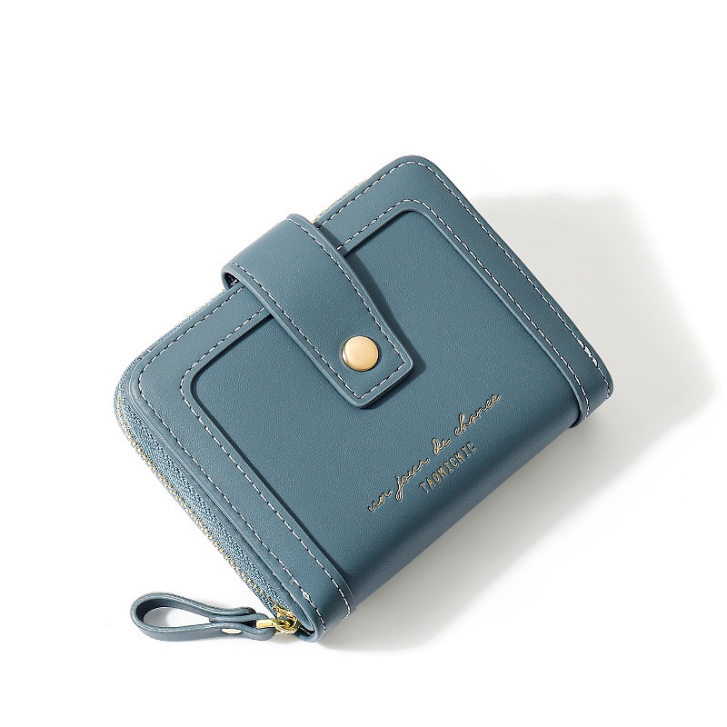 Ví ngắn PIERRE LOUES bằng da PU gập đôi có khóa kéo thiết kế đơn giản cho nữ