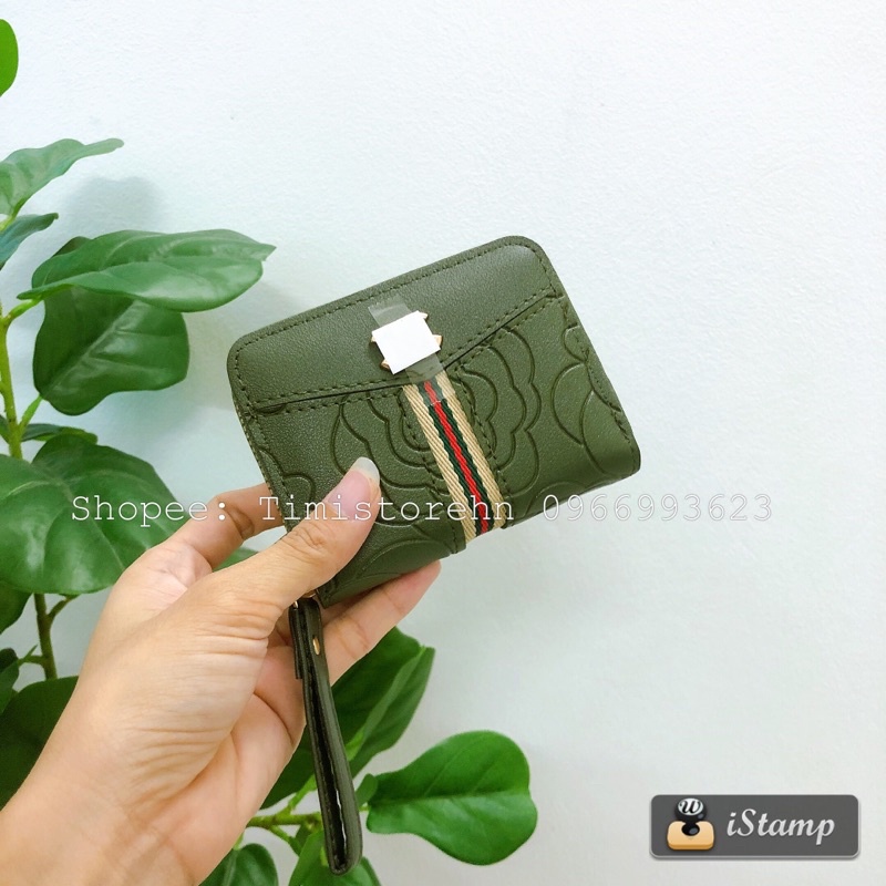 Ví tiền nữ, Bóp tiền nữ, Ví nữ, Bóp nữ, Ví ngắn kéo khoá nhiều ngăn da in hoa trà bền đẹp TIMISTOREHN V05