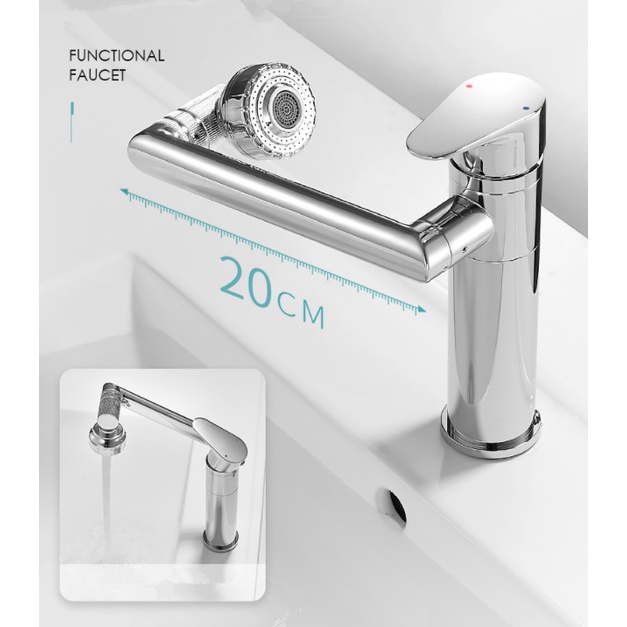 Vòi Nước Bồn Rửa Nhà Tắm Bằng Đồng Thau Cứng Đa Năng Xoay 360 Độ , chậu lavabo nóng lạnh Vòi rửa mặt